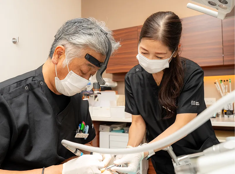 より自然な美しさを目指したいのであれば、セラミック製の白いつめ物やかぶせ物に入れ替える治療(※)も対応していますので、入れ替えをご希望される場合も気兼ねなくご相談いただければと思います。 ※自由診療です。料金は料金表をご確認ください。