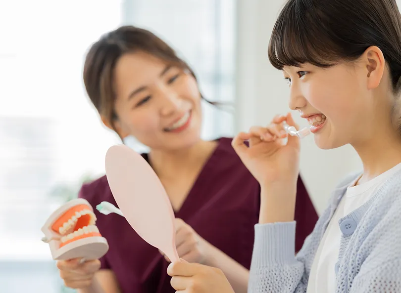 患者さまが受診された際には虫歯・歯周病のチェックやクリーニング、ブラッシング指導を行います。